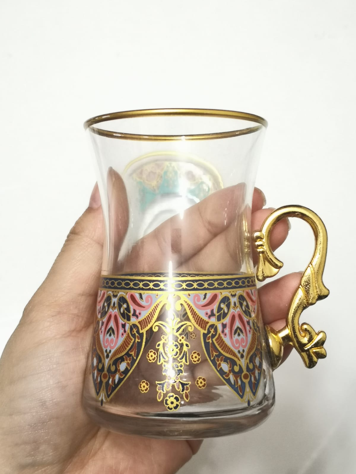 Handmade Glass Turkish Tea Cup (Noble) with a handle